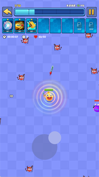 左上角实时显示当前波数及敌人进度;角色拥有50点生命值,被敌人触碰即扣血,归零则挑战失败。银币可用于刷新技能池,建议保留至关键波次(如BOSS战前)再使用,最大化收益。