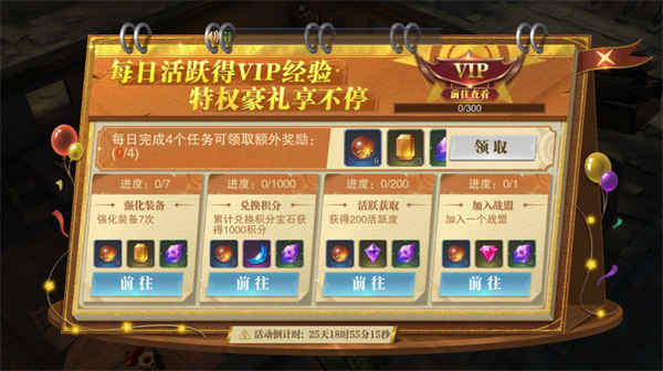 完成日常任务即可积累VIP经验,0氪也能解锁VIP特权,并额外领取宝石、强化材料等关键养成资源,助力战力稳步提升。