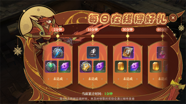每日累计在线达标,即可领取装备、宝石、月卡碎片等奖励,轻松拿满每日资源,养成无忧。