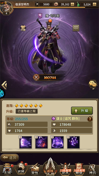 曹魏权臣司马懿,字仲达,智谋深沉,为西晋奠基之人。魔化后诡计更胜往昔,控场与持续输出能力兼具,是策略型核心武将。