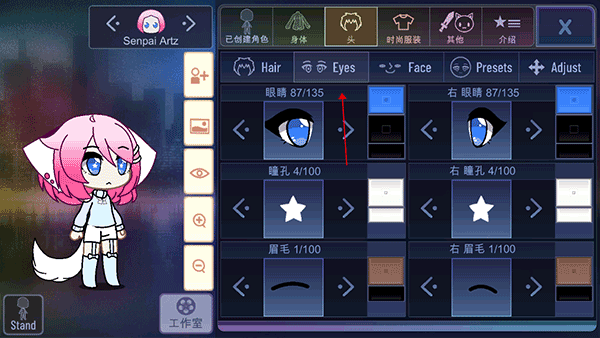 3、浏览并点击任一瞳色/眼型预设,实时应用至角色;