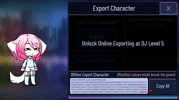 2、点击「输出」→「Copy All」,一键复制当前角色完整设定代码;