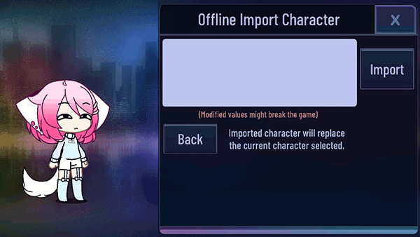 3、返回首页点击「输入」,粘贴代码后点击「Import」即可加载他人创作的角色;点击「Back」可清空已输入内容,操作安全便捷。