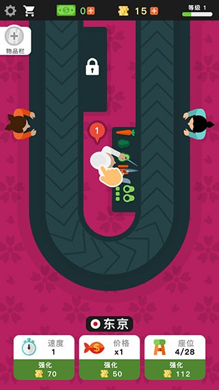 游戏采用“自动生产+手动加速”双轨机制:厨师会持续制作寿司,点击即可瞬时提速;随着等级提升,逐步解锁更多厨师位、多线并行制作,效率翻倍不费力。所有经营行为均围绕“寿司品质→顾客满意度→店铺人气→收入增长”闭环展开,策略性与休闲感完美平衡。