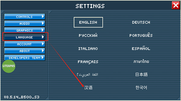 3、点击「Language」→ 选择「汉语」,立即生效