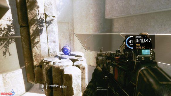 游戏开篇即进入高强度训练——库柏在拉斯提摩沙上尉指导下完成「铁驭头盔」认证。首段模拟训练涵盖全部核心操作:墙面蹬跃加速、斜坡滑铲转向、R201稳定步枪与DMR精准点射手感适配;综合考核中,幻影路线即最优通关路径,善用墙壁奔跑提速、喷火枪/ R201双持切换、手雷清点压制,可大幅提升效率。终点高台左侧藏有首枚【铁驭头盔:1/1】,训练后与上尉对话即可解锁泰坦BT初训。