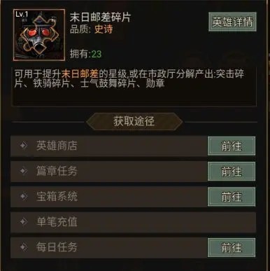 天赋页激活差异化成长:基础天赋与技能联动(如“末日邮差”每级【突击】同步提升骑兵攻防),觉醒天赋需专属材料解锁,让每位英雄真正独一无二;