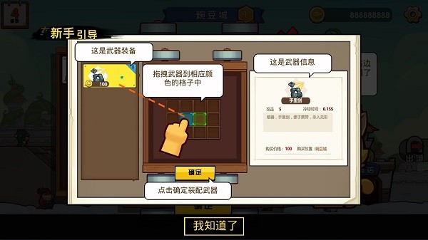 行进途中,拦路小怪会随机出现。长按屏幕蓄力,松手释放专属技能——攻击效果与所配武器类型及格子颜色联动,策略性与操作感兼具。