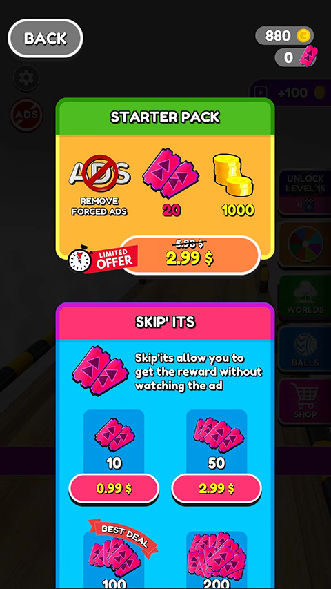 通关即得金币奖励,用于解锁新皮肤、升级能力或兑换稀有道具;点击【BALLS】自由切换数十款个性球体外观,从炫光金属到萌系糖果,风格随心定义;进入【WORLDS】切换主题地图——冰川裂谷、熔岩隧道、太空浮岛等场景持续更新,视觉与机制双重焕新;每日参与【大转盘】抽奖,金币、限定皮肤、能力强化卡等福利随机掉落,惊喜不重样。