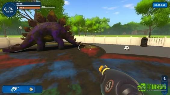 目标:将足球精准冲上剑龙滑梯。操作分三步——先用喷枪将足球沿地面推至剑龙头部台阶前;再耐心调整角度,利用喷射反冲力将其“弹射”入滑梯入口(注意落差易致弹偏);成功入轨即刻解锁。