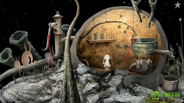 1、点击狗屋,小狗被抓走,动画结束后正式进入解谜流程