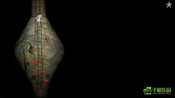 13、穿过地道后面对墙面三枚十字按钮,依次点击调整红线至水平直线;按下中央大按钮放水;点击右上方通道口继续深入