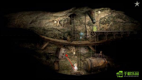 15、点击机器内部皮带使其停转;外星人下楼检查时,主角自动从另一侧潜入;点击楼梯前往工厂二层