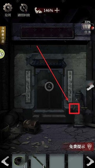 5、点击中央门扉,将毛笔、墨、纸、砚依次嵌入对应凹槽,文官墓开启