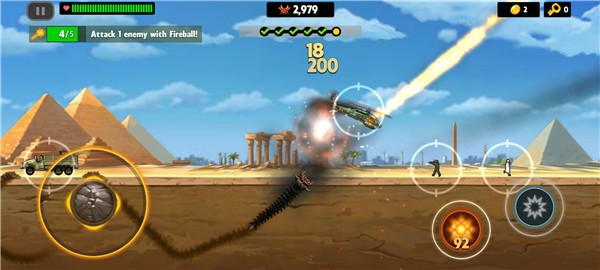 5. 解锁并释放多种破坏性技能,对地面设施和敌方单位造成毁灭性打击。