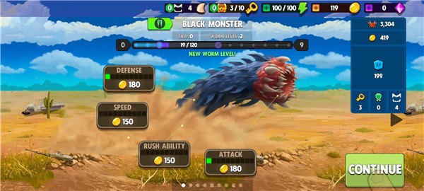 6. 通过升级系统对蠕虫的头部、身体、速度、攻击力等部位进行强化,打造专属的终极掠食者。