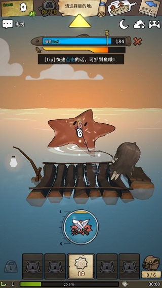 你将化身一位随洋流漂泊的少女,在星罗棋布的岛屿间展开生存之旅。核心玩法极简却富有节奏感:长按抛钩入海→观察浮标微动→鱼咬钩瞬间点击海面→快速连点收竿夺鱼!操作逻辑贴近真实垂钓反馈,又保留放置游戏的轻松感。初获渔获后,即可前往码头兑换物资、解锁新海域与功能模块。随着旅程推进,潮汐变化、稀有鱼种、突发风暴等动态挑战将逐步浮现,考验你的资源规划与临场判断。