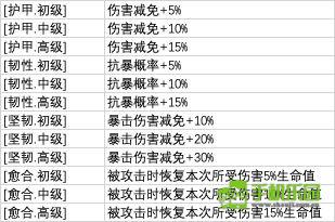 装备防御类特性: