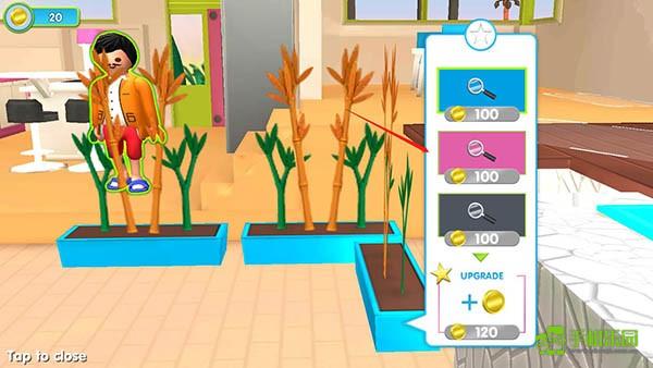 3. 场景中虚线框标注区域为可放置道具位,点击即可浏览商品库,金币充足即可即时购买并更换颜色;