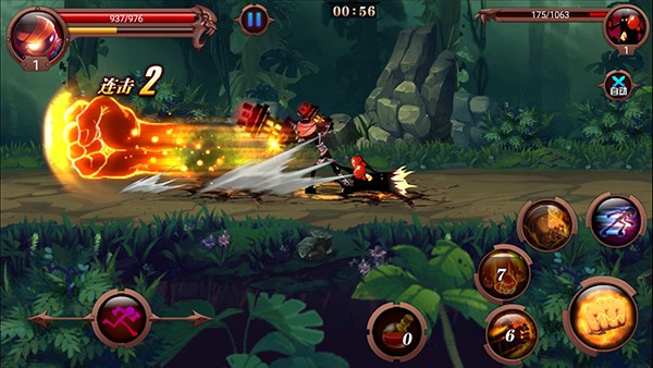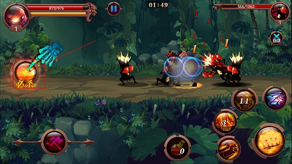 采用手绘质感2D美术风格,火柴人造型Q萌不失魄力,技能特效粒子丰富、层次分明;