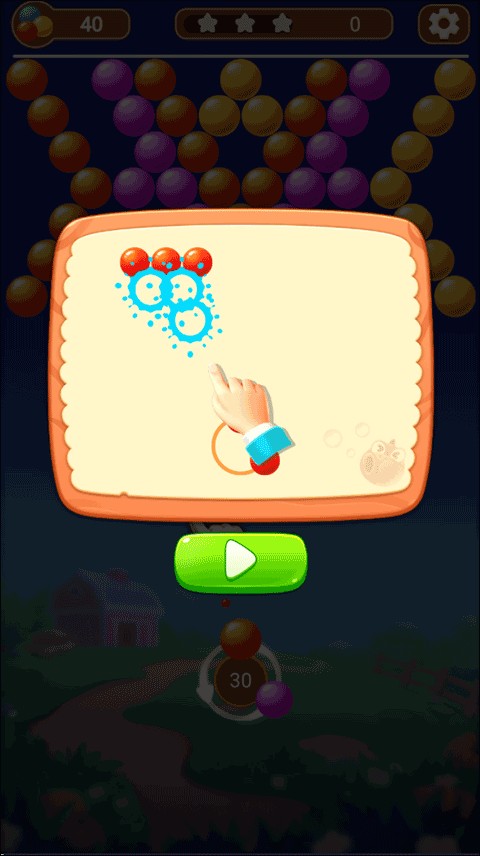 当3个或更多同色泡泡紧密连接(含直接碰撞或反弹后聚集),瞬间触发连锁消除,碎片飞溅、分数飙升!