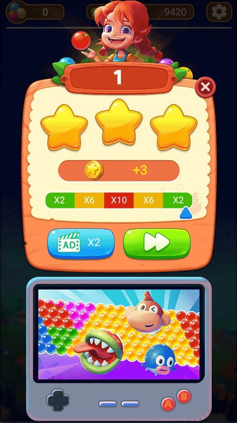 在传承泡泡龙“瞄准-反弹-连锁”灵魂玩法基础上,创新加入重力变化、冰冻气泡、彩虹炸弹等机制,经典不怀旧,新鲜不陌生。