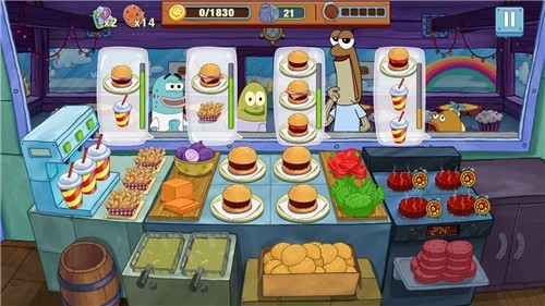 解锁超30种动画同款料理:经典蟹堡、海藻奶昔、水母果冻……还能自定义酱料配比、面包烘烤时长、配菜组合,创造只属于你的“秘制限定款”;自由装修餐厅:从菠萝屋外墙到厨房动线,从灯光色调到员工制服,所有细节由你亲手设计——让每位进店顾客都说:“这味道,这氛围,太比奇堡了!”