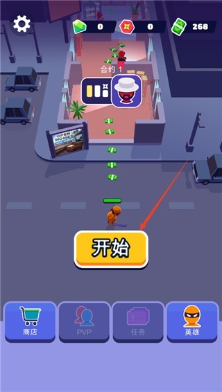 进入游戏→点击“开始”即刻开启首关挑战!每局任务前系统将随机刷新武器池,可用钞票即时购买心仪装备,灵活适配当前战术需求。
