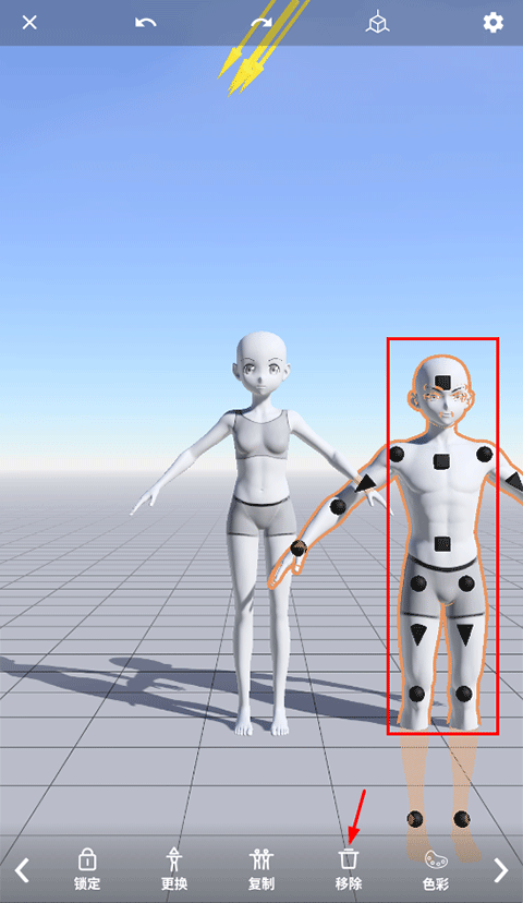 3、长按当前角色,选择「移除」释放画布空间;