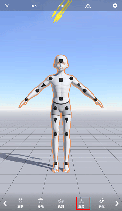 2、滑动底部工具栏,定位「服装」分类入口;