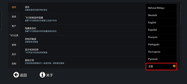 3. 在语言列表中选择「汉语」,确认后即刻生效,全界面无缝切换为简体中文。