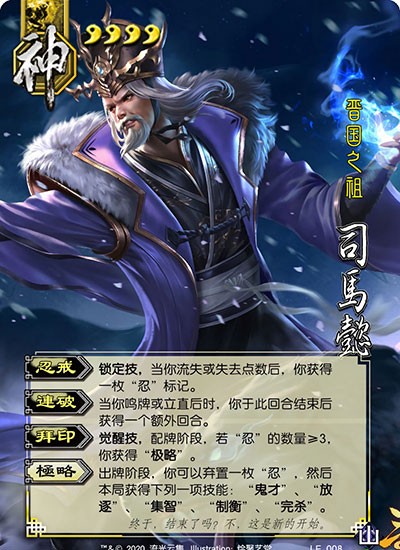 神司马懿:觉醒后坐拥9项技能,【鬼才】【放逐】【集智】联动高效,适应多场景对局。觉醒门槛低、卖血触发稳,虽无额外摸牌技,但【忍戒】+【制衡】组合保障持续运营能力,排位常青树首选。