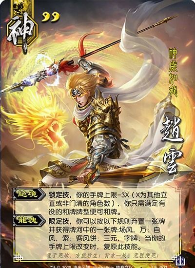 神赵云:双血线下的极致防御者,【龙魂】赋予四色牌多重功能(红桃=桃、方片=火杀、梅花=闪、黑桃=无懈),前期极难被突破。虽输出偏弱,但生存即资本,是团队中坚与翻盘支点。