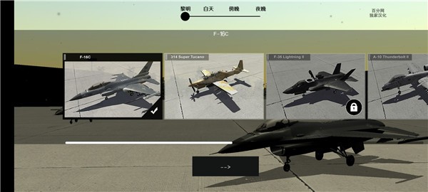 2、在任务准备阶段,自由设定飞行时间(晨曦/正午/黄昏/夜航)、地形环境(海岛、沙漠、山地、航母甲板)及起降跑道类型;