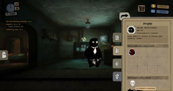 敲诈有术,偷盗有度:潜入目标房间,在柜中放置三样物品触发“红字提示”,记下线索后原样取回。每日偷盗次数有限(推荐购买5条蓝领带扩充额度),若次数耗尽,可转而搜刮杂物区维持基础收入。
