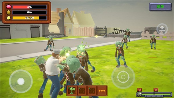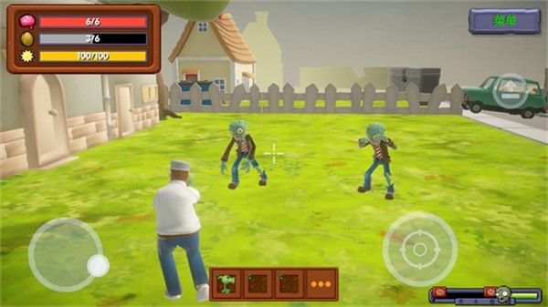 左手摇杆掌控戴夫移动方向,滑动即走位闪避;右手功能区集成射击、植物释放、技能触发等核心操作;轻扫屏幕任意位置自由旋转视角,全局视野尽在掌握。