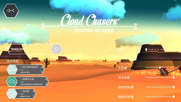 云之追逐者是一款以浩瀚沙漠为舞台、兼具诗意美学与深度叙事的生存冒险游戏。玩家将化身一位坚韧的父亲,携年幼女儿穿越无垠沙海,在风蚀岩壁与流云之间追寻传说中的新家园。每一处抉择都牵动命运——资源分配、路径取舍、危机应对,甚至对话选项,都将真实影响父女二人的存亡与故事走向。手绘级唯美画面、沉浸式环境音效与细腻情感刻画,共同构筑一场关于希望、牺牲与羁绊的视觉诗篇。