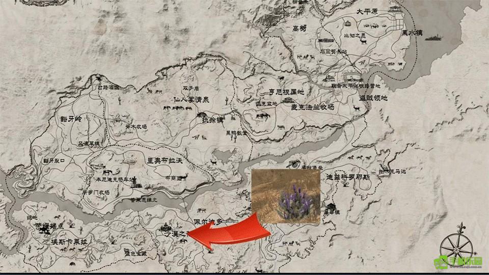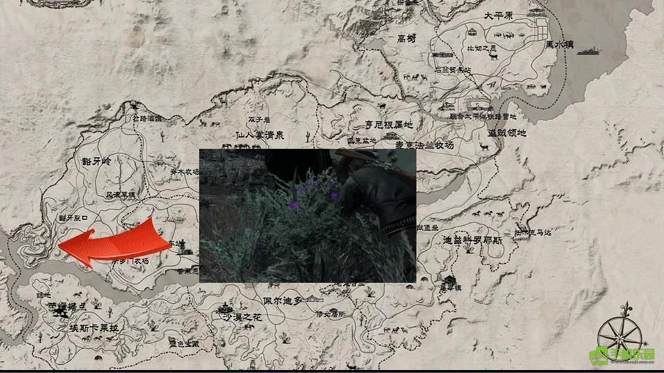 7、蜂鸟鼠尾草 ×10|刷新点:高树镇左下方,紧贴地图边缘——三头山羊图标左侧岩缝间