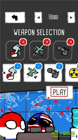 2、战前准备:从无人机、机枪、核弹三大特色武器中任选其一,确认后点击“PLAY”开启关卡;