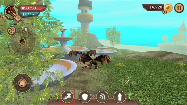 左摇杆精准调控三维空间位移(含爬升/俯冲),右区集成「撕咬」「尾扫」「元素吐息」三类战术指令键。面对人类弓箭手、法师塔与机械守卫,你需要预判弹道、利用地形掩体、切换元素克制链——操作门槛友好,但上限极高,高手可打出连招浮空+瞬发冰霜禁锢的极限配合。