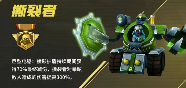 巨型电锯:棱彩护盾持续期间获得70%最终减伤;对处于晕眩状态的敌人,伤害提升300%——专精斩首突袭,越控场越致命。