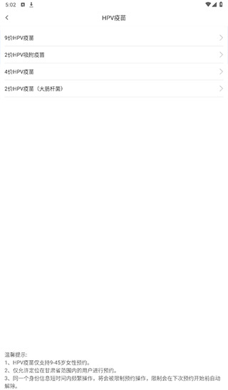 第四步:选择【HPV疫苗预约】,系统将自动展示当前可约的疫苗类型及对应接种点。