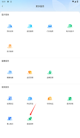 第三步:在服务列表中找到并点击【疫苗接种】模块。