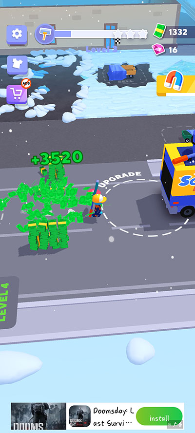刮地大师(Scrape Master)是一款将“清洁”升华为战略经营的硬核模拟游戏——在这里,扫地不是打杂,而是创业;清垃圾不是跑腿,而是布局全球清洁帝国!你将从一家街角小作坊起步,接单、组队、购设备、建站点、闯关卡,在冰雪覆盖的广场、油污斑驳的车库、纤尘不染的木地板之间穿梭作业,用逻辑优化路线、用数据驱动升级、用效率兑现利润,最终把“刮地”这件事,干成一门令人上头的生意。