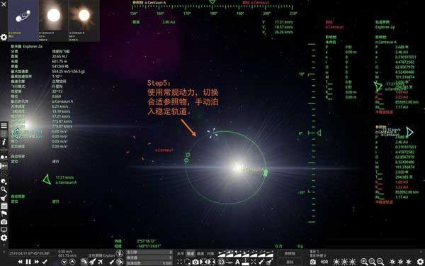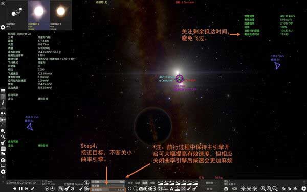 成功抵达后,将飞船泊入南门二A恒星的稳定轨道。若航行中持续开启主引擎,后续减速入轨将耗费更长时间——这是真实物理带来的严谨挑战。