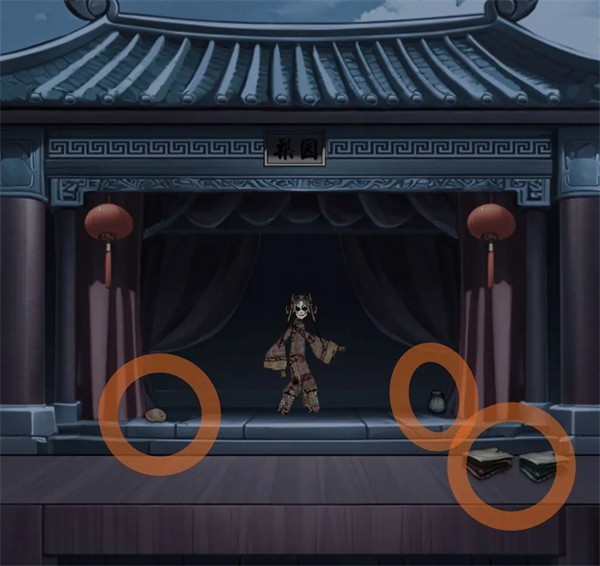 ⑤ 文思堂需用燃烧蜡烛点亮灯笼方可进入,内含天平解谜:放置砝码消除等重组合(如9=3+6、7=2+5),成功后鬼脸浮现,须穿戴与其同色戏服才可存活,再以钥匙开启盒子,获取贡品清单2。