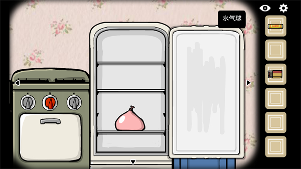 从气球开始,到黑胶唱片落下——本阶段是理解整个系列交互逻辑的钥匙。点击气球触发视角切换;拆开礼物发现神秘机器;移步左侧柜子取酒,再为爷爷制冰、配乐……每一步都环环相扣。特别注意:水球需装满后置入冰箱门缝,才能凝结出可用冰块;右侧画框后的俄罗斯方块小游戏,需完成10次三连消除,方可获得驱动留声机的关键黑胶唱片。