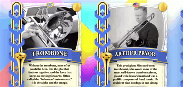 从激昂澎湃的《美国国歌》《拉德茨基进行曲》,到魔性洗脑的电子热单、温柔悠扬的民谣小调,再到挑战极限的古典炫技片段——所有曲目均经专业编曲适配长号音域,配合实时渲染的动态背景动画:音符跃动时舞台光影流转,高潮段落全场狒狒齐舞,视听同步带来极致沉浸感。