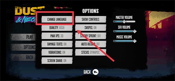 2、在设置菜单中选择【CHANGE LANGUAGE】;