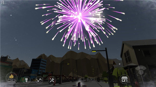 第一人称沉浸模式:化身小镇居民,在精致3D开放地图中自由行走、奔跑、蹲伏,手持遥控器实时点燃身旁烟花——悄悄在邻居家后院埋一发“惊雷”,或在广场中央引爆巨型锦缎,体验身临其境的狂欢张力。